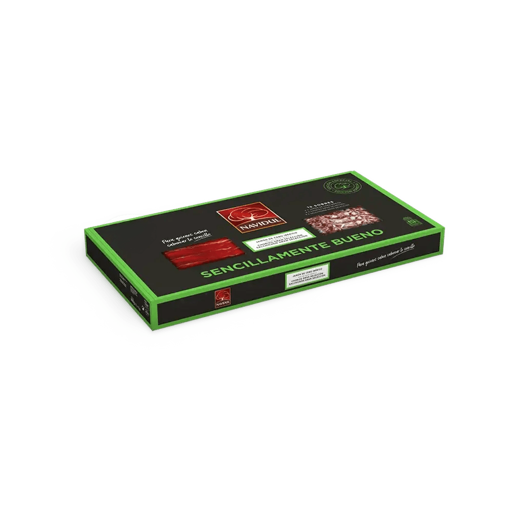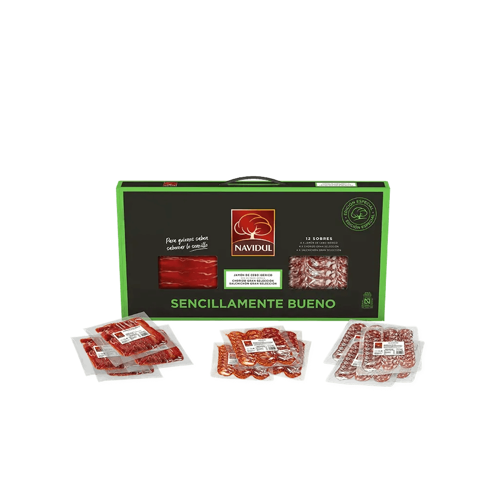 Compra el pack Maletín Ibérico Mixto Navidul: embutidos, preparado y envasado al vacío dentro de una caja-maletín, para que puedas llevarlo cómodamente.